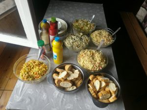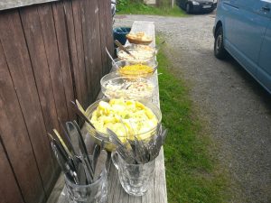 Vegetarier werden beim Hauptgericht natürlich berücksichtigt (bitte bei der Anmeldung vermerken). Bei gutem Wetter grillen wir einmal im Sommer und sitzen am Lagerfreuer. Manchmal wird sogar Feuer gespuckt. Einen Abend kochen wir komplett vegetarisch und an einem Abend seid ihr eingeladen, die lokale Gastronomie auszuprobieren.