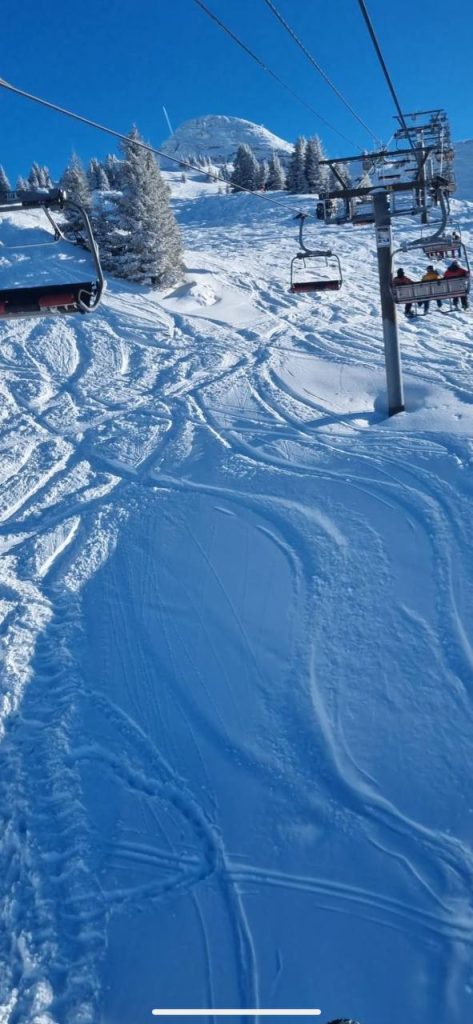 Ab 16:00 Uhr öffnet die Schneebar vor dem Haus. Wer mag, tanzt sich im Skischuh warm, genießt Hüttensound oder lehnt sich mit einem Drink im Liegestuhl zurück und nimmt die letzten Sonnenstrahlen mit. Ein entspannter Ausklang – so, wie er zum Tag in den Bergen passt.